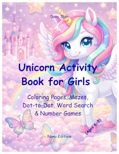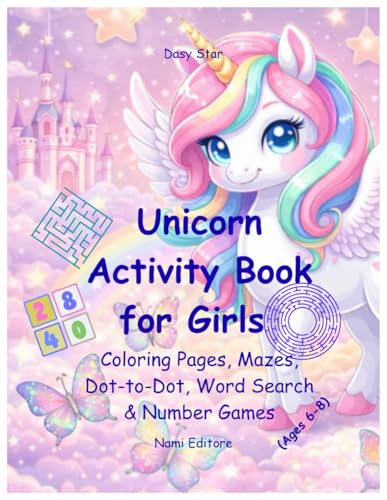Unicorn Activity Book for Girls (Ages 6-8): Coloring Pages, Mazes, Dot-to-Dot, Word Search & Number Games