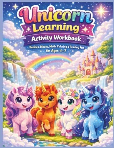 Unicorn Learning Activity Workbook for Kids Ages 4–7: Magical Puzzles, Mazes, Math, Coloring and Reading Games for Young Learners