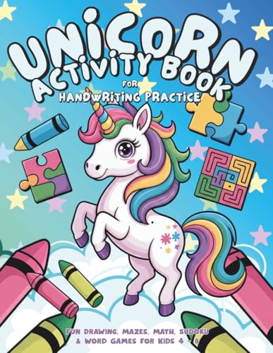 Unicorn Activity Book for Handwriting Practice: Huge Unicorn Activity Book for Kids Ages 4–8 | Drawing, Mazes, Math, Sudoku & Word Games