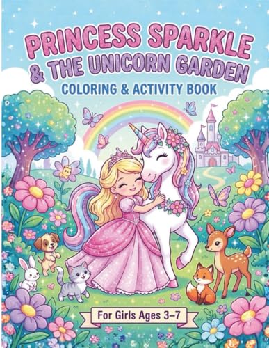 Princess Sparkle & The Unicorn Garden Coloring & Activity Book: for Girls Ages 3-7