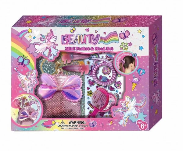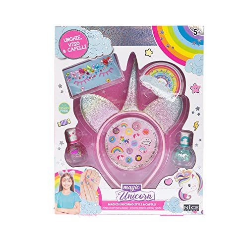 Magic UNICORN - Nice Group Hair Beauty Make Up med rosett, nagellack, 3D-stenar och pannband för hår, flerfärgad, en storlek, 16001