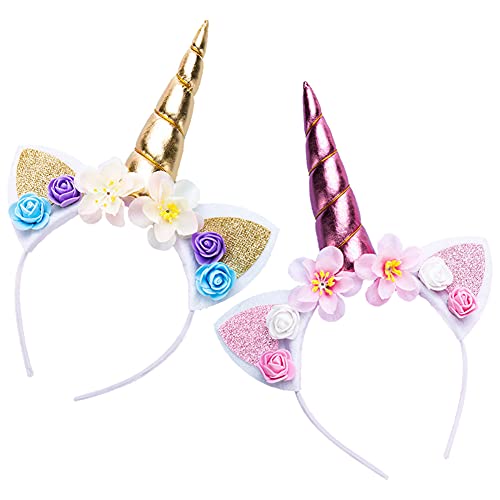 2st Enhörning Hårband, Enhörning Pannband,Enhörning Fest Hårband, Enhörning Festväskor Födelsedagstillbehör, Pannband Härlig Huvudbonad Party Hair Hoop För Kvinnor, Cosplay Dekorativ(Gyllene, Rosa)