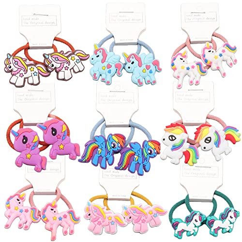 Enhörning hårsnoddar barn/Hår slips för flickor/Hästsvans hårslipsar/Hårband för småtjejer (9par/18st) Cute Elastic Unicorn Ponytail hair ties/Hair bands for Toddler Girls