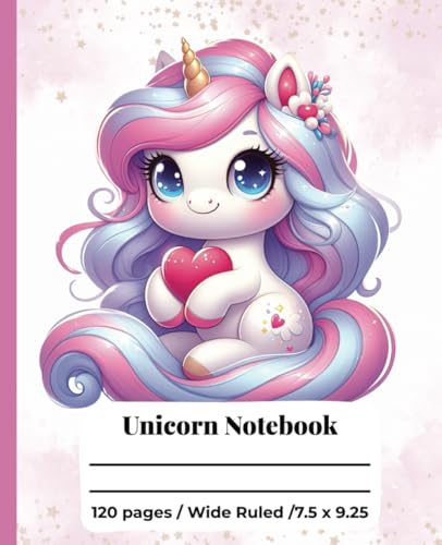 Composition notebook: Cute Unicorn with Purple and Pink Hair | Wide Ruled Notebook | Composition notebook wide ruled, 7.5 x 9.25, 120 Pages, For kids, teens, and adults