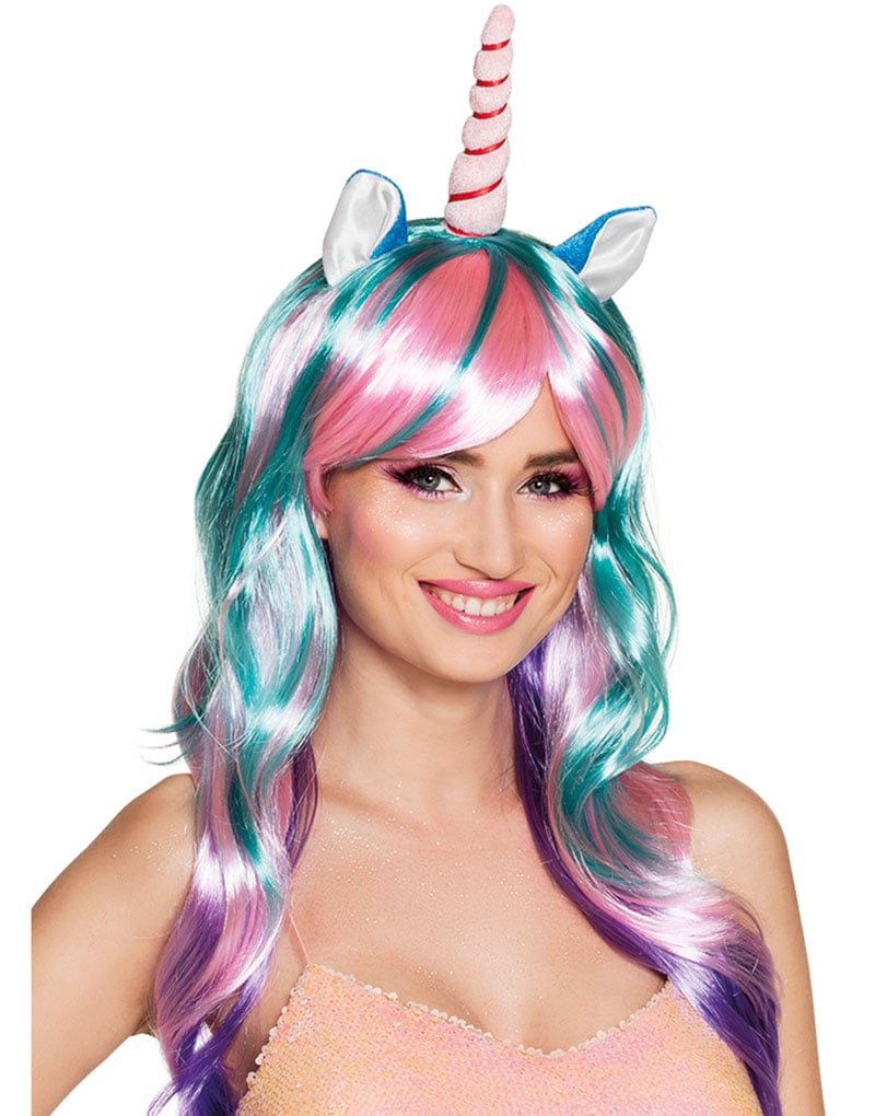 Fantasy Unicorn - Flerfärgad Peruk med Öron och Horn