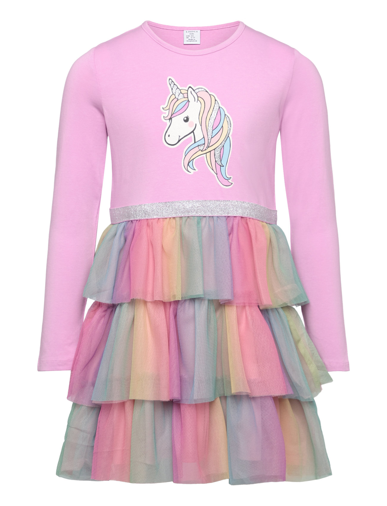 Lindex Dress L S Unicorn And Mesh Ski Rosa