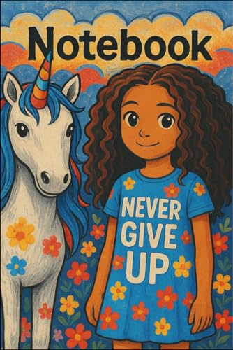 Never Give Up Unicorn Girl Notebook – Rainbow Unicorn & Floral Dress | 6x9 Lined Journal: Inspirational Notebook | 100 Lined Pages | Cute Gift for Girls, Teens & Dreamers