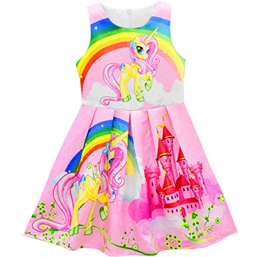 ALAMing Enhörning Flickor Klänning Ledig Fest Bröllop Sommar Rosa Röd Lila Sundress 3-8 år