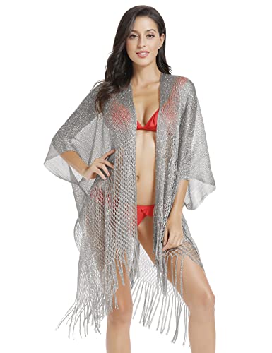 JK Unicorn Kimono Swimsuit Cover Ups for Women Swimwear Cover Ups Beach Cover Up Silver shawl Formal Shawl For Evening Dress (Dark Gray)