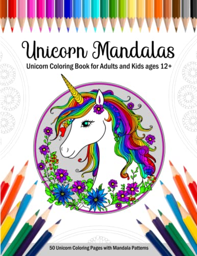 Unicorn Mandalas - Unicorn Coloring Book for Adults and Kids ages 12+: 50 Unicorn Coloring Pages with Mandala Patterns