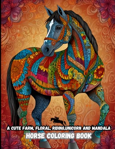 A Cute Farm, Floral, Riding,Unicorn and Mandala Horse Coloring Book: 8.5*11 | pages 104 | 50 Large Size Horse Images | Boys and Girls | Color Test Page Included