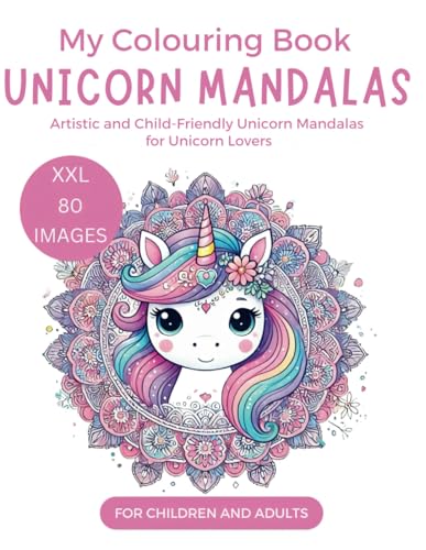 Unicorn Mandala Colouring Book for Kids and Adults: 80 XXL Pages: Artistic and Child-Friendly Unicorn Mandalas for Girls & Boys (Ages 4-10) and Unicorn Lovers