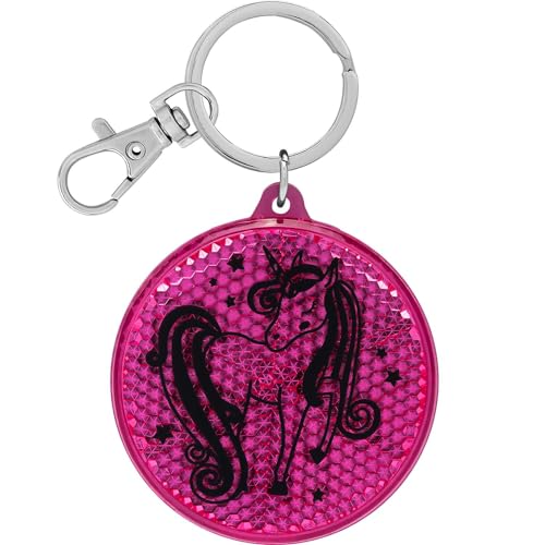 GRUSS & CO reflektormotiv enhörning | rund berlock med nyckelring och karbinhake, nyckelring på headercard, reflektorhänge | barns födelsedag, gåva, skolstart | 70158, rosa, 5,5 cm, Motiv "enhörning"