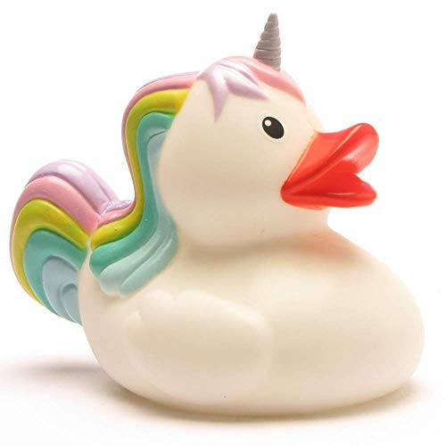 Duckshop I badanka enhörning I pipande anka I L: 10 cm – inkl. gummianka nyckelring i en uppsättning I leksaker och present till spädbarn och barn I badleksak för badkaret