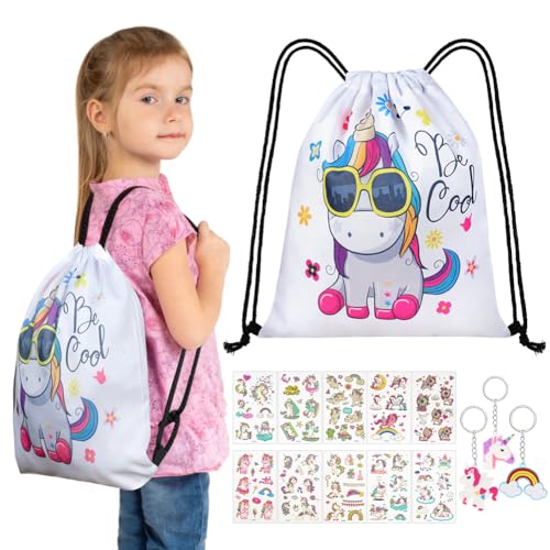 URAQT Enhörning Barnväska, Enhörning Ryggsäck med Dragkedja, Enhörningsväska för Flickor med Enhörning Nyckelring Tatuering, Barndagispåse för Barnkammare Utflykt Sport Tid, 4377653-enhörning väska (B