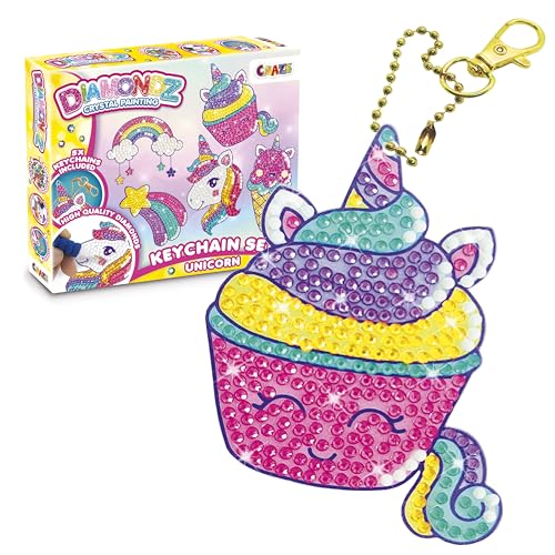 CRAZE DIAMONDZ Keychains set för enhörning – gör-det-själv diamantmålning nyckelring pysselset, diamantmålning barn 5 x mallar och tillbehör