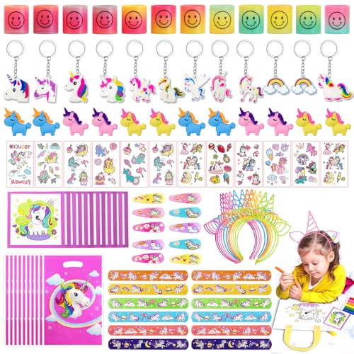 Qcdou 84 Stycken Enhörning Dekoration Party Present - Tatueringar, Hårklämmor/Nyckelring, Snäpparmband Barn, Presentpåsar För Barnfödelsedag Flicka (A-2)