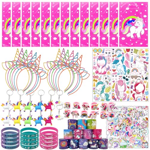 NlsqEU 134 stycken enhörning party present barnfödelsedag enhörning födelsedag presentpåsar hårband snap armband nyckelring klistermärken ring silikonarmband födelsedag souvenir