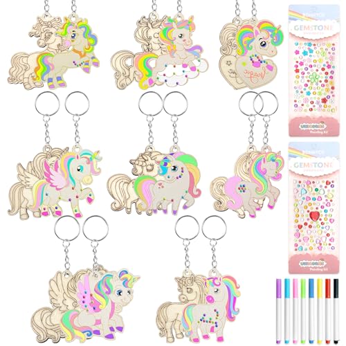 TOPJOWGA Nyckelringar enhörning, 26 stycken enhörning trä pysselset, enhörning för målning, nyckelringar pysselset av trä, enhörning nyckelring pyssel hantverk nyckel hänge