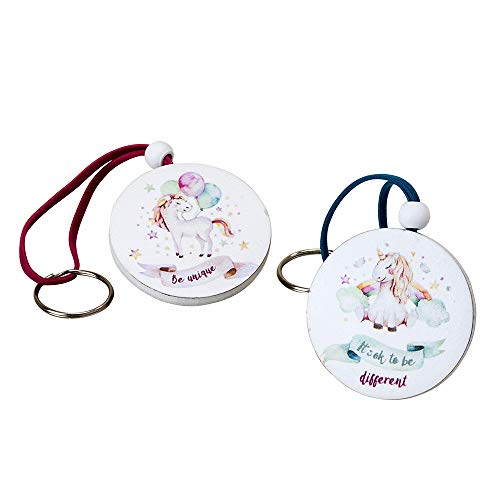 Mopec - W744 Unicorn trä nyckelring, 5 cm, 4 pack, Multifärg, färg/modell sortiment