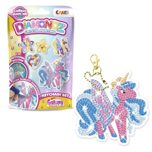 CRAZE DIAMONDZ Nyckelring Set Galupy Enhörning - Diamant Målning Barn Nyckelring Set, Gör-det-själv Diamant Målning Hantverk Set, Mosaik Tillverkning för Barn