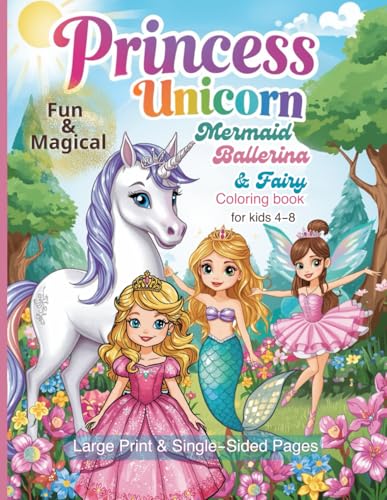 Fun & Magical Princess, Unicorn, Mermaid, Ballerina & Fairy Coloring Book for Kids Ages 4-8: Dream, Shine & Create, Large Print & Single-Sided Pages — ... & Kindergarten Who Love Magic and Fairytales