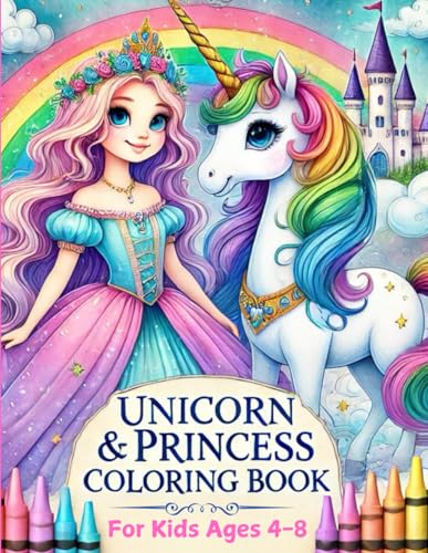 Unicorn & Princess Coloring Book: For Kids Aged 4-8 (2 IN 1 Color & Draw) LARGE PRINT & EASY TO COLOR