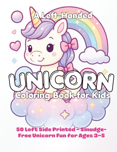 A Left-Handed Unicorn Coloring Book for Kids: 50 Easy Unicorn Imagess for Ages 3–5 | Printed Only on the Left Pages to Prevent Smudging | Large Print, ... Preschoolers, and Left-Handed Beginners