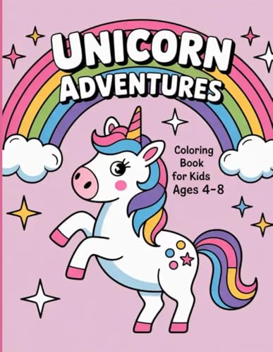 Unicorn Adventures Coloring Book For Kids Ages 4-8: 50 Fun And Magical Pictures - Bold And Easy Designs Single Sided Large Print