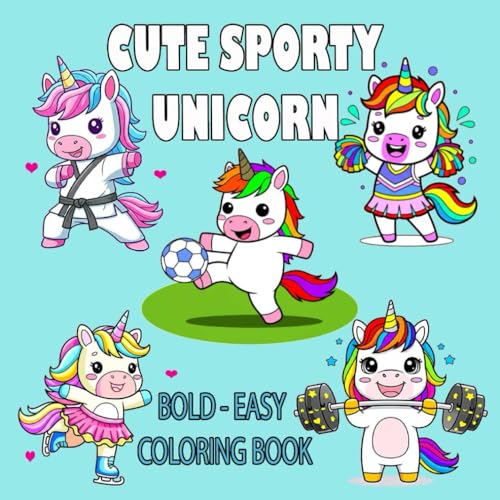Cute Sporty Unicorn : Bold And Easy Coloring Book: Big and Simple large Print Designs For Kids, Adults, and Seniors