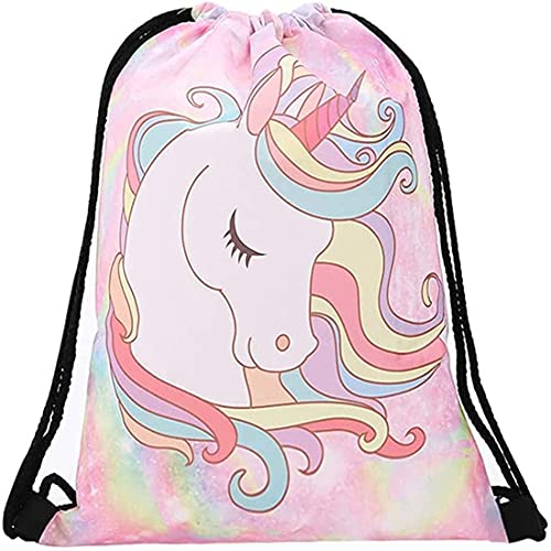 Enhörning dragskoväska, enhörning dragsko ryggsäck gym väska väska 3D full print ryggsäck dragsko kanvas väska för pojkar flickor gym skola simning pool strand camping resor, ROSA, L