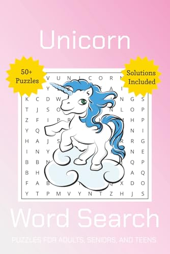 Unicorn Word Search Puzzles for Adults, Seniors, and Teens: Easy to Read Print | 6x9 inches, 110 pages | 50+ Puzzles ... Gift for Vacations, Holidays, and Free Times