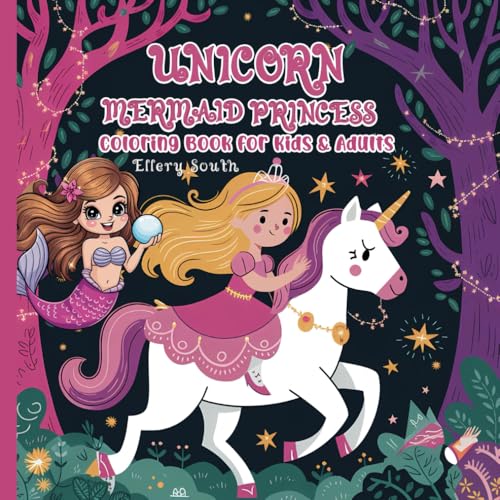 Unicorn, Mermaid, Princess Coloring Book for Kids & Adults: Discover the Cutest Unicorn, Mermaid, and Princess for Kids and Adults: Stress Relief and Relaxation, Large Print