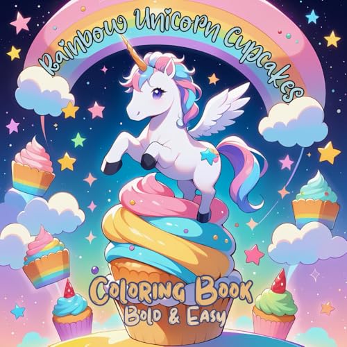 Rainbow Unicorn Cupcakes Coloring Book Bold and Easy: 50 Cute and Magical Designs for Relaxation | Fun Large Print Coloring Pages with Thick Lines for Adults and Kids.
