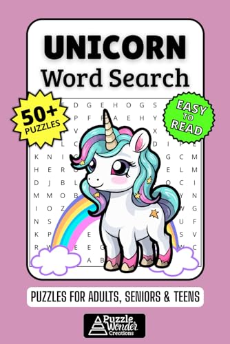 Unicorn Word Search Puzzle Book: 50+ Magical Puzzles Full of Rainbows, Sparkles & Enchanting Fun: Clear Print Word Searches About Unicorns, Fairy ... Brain Game for Kids, Teens, Adults & Seniors