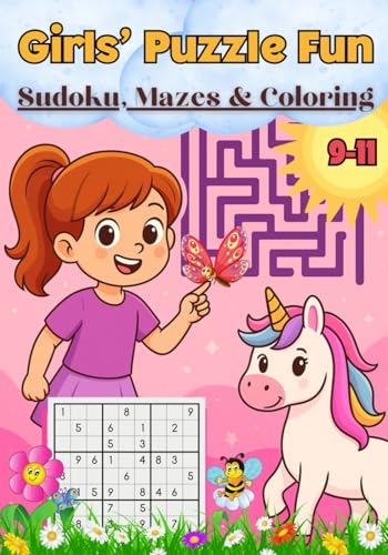 Girls’ Puzzle Fun: Sudoku, Mazes & Unicorn Coloring for Ages 9–11