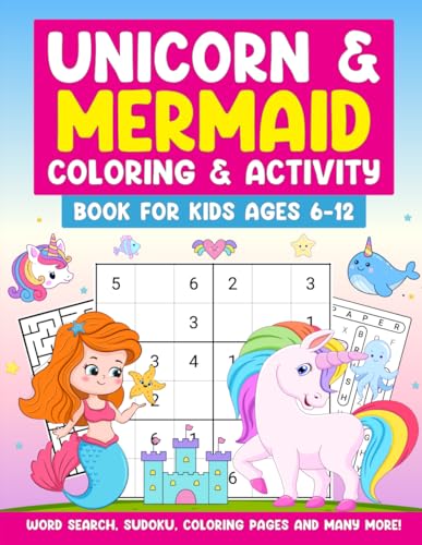Unicorn Mermaid Puzzle Book for Girls 6-12: WORD SEARCH, SUDOKU, COLORING PAGES AND MANY MORE!
