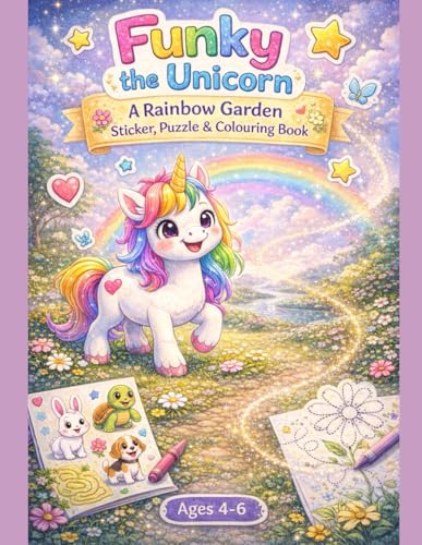 Funky the Unicorn- A Rainbow Garden- Sticker, Puzzle and Colouring Book