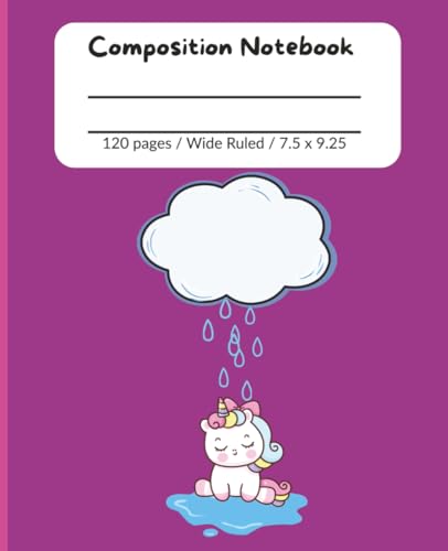Composition Notebook: Cute Unicorn in Water Puddle | Wide Ruled Notebook | Composition notebook wide ruled, 7.5 x 9.25, 120 Pages, For kids, teens, and adults