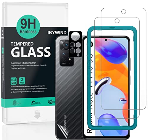 Ibywind Screen Protector for Xiaomi Redmi Note 11 Pro 5G/4G 6.67",[Pack of 2] with Camera Lens Cover (Metal Material), Rear Carbon Fiber Skin Cover, Including Easy Installation Kit