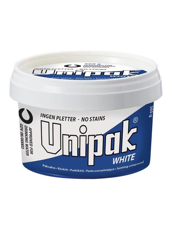 Unipak Packningssalva 360 Tätar Tillsammans Med Packningsgarn Gängade Skarvar På Installationer För Varmvatten Och Uppvärmning