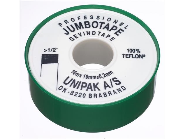 Unipak Jumbotape 15M 19X0,2Mm Til Damp, Drikkevand Og Varme Til Store Gevind Temperaturområde Fra -200°C Til +160°C