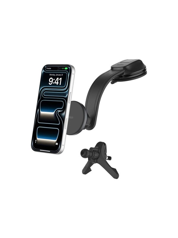 Belkin BoostCharge car wireless charging holder - magnetic with air vent and dash mount + car power adapter - 15 Watt