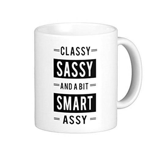 Acen 'Classy Sassy and a Bit Smart Assy' rolig serie kaffemugg – 11 oz Mu, keramik, vit, 9 x 9 x 9 cm