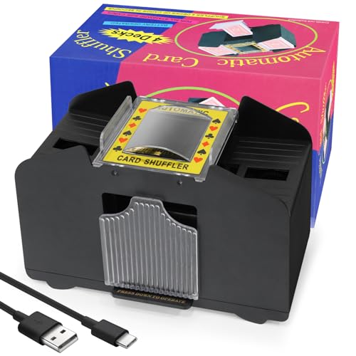 ZAKVOP Kortblandare, elektrisk, 4 kortplatser, USB/batteridriven automatisk kortblandare för pokerkort, UNO-kortspel och blackjack, perfekt för familjefester och resor