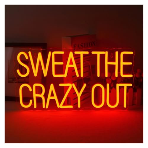 Hängande konst neonskyltar Sweat The Crazy Out Neonskyltar Inspire Letter Wall Light Up Skylt Rumsdekoration För Gym Sport Fitness Club Dimbara Lampor 42X21,5cm