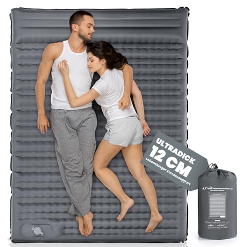 HIKENTURE 12 cm dubbel matta ultralätt camping för 2 personer, uppblåsbar sovmatta, luftmadrass, campingsäng med fotpump för utomhus, vandring – grå A2