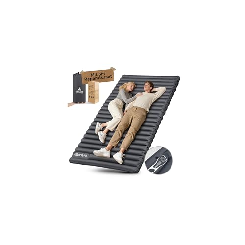 HIKENTURE Luftmadrass för 2 personer, dubbel madrass uppblåsbar, självuppblåsande camping sovmatta 140 cm med fotpump, för camping, utomhus, vandring, strand, grå