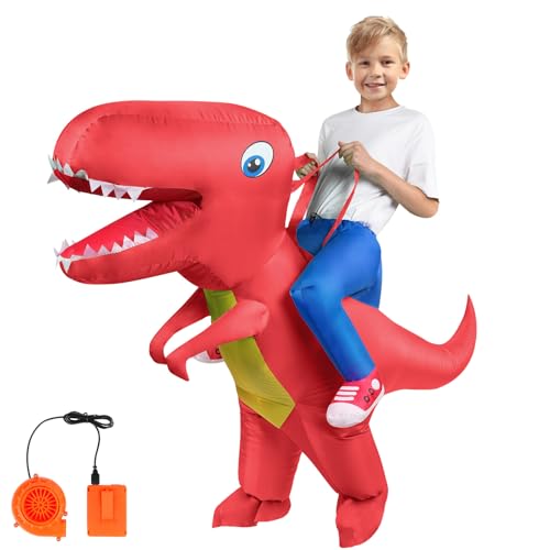 Xoeryoy Uppblåsbar dinosaurie kostym polyester halloween dinosaurie kostym rolig ridning Tyrannosaurus uppblåsbar fest halloween kostymer för barn 7-10 år