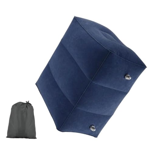 JEWEDECO 1st Justerbar Uppblåsbar Fotpall i Mörkblå Fällbar Och Lättviktig Resefotpall Med Dubbel Ventil För Snabb Uppblåsning Och Bekväm Benstöd